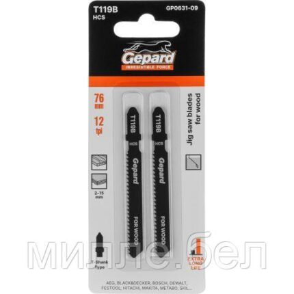 Пилка лобз. по дереву T119B (2 шт.) GEPARD (пропил прямой, тонкий, для базовых работ)