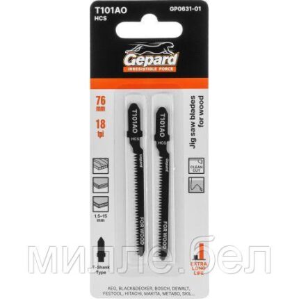 Пилка лобз. по дереву T101AO (2 шт.) GEPARD (пропил криволинейный, тонкий, аккуратный и чистый рез)