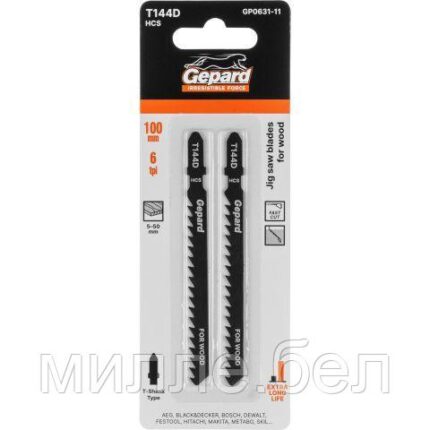 Пилка лобз. по дереву T144D (2 шт.) GEPARD (пропил прямой, грубый, быстрый рез)