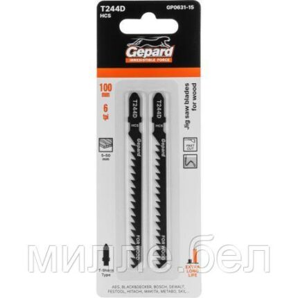 Пилка лобз. по дереву T244D (2 шт.) GEPARD (пропил криволинейный, грубый, быстрый рез)