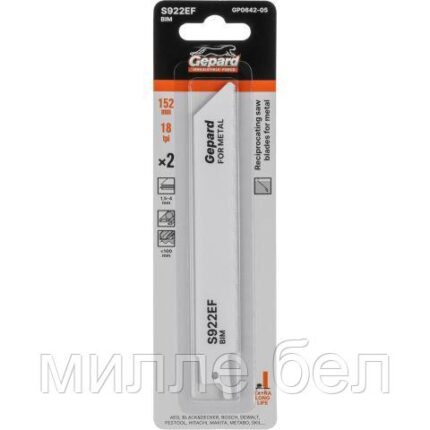 Пилка сабельная по металлу S922AF (2 шт.) GEPARD (152мм, полотно для сабельной пилы, пропил прямой, тонкий