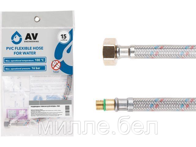 Подводка гибкая, ПВХ, иголка м10 короткая — гайка 1/2″ 50 см AV Engineering (10 Bar, 75°С, в пакете)