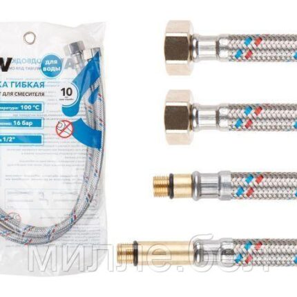 Подводка гибкая, SUS, иголка м10 — гайка 1/2″ 50 см (пара) AV Engineering (10 Bar, 75°С, в пакете)