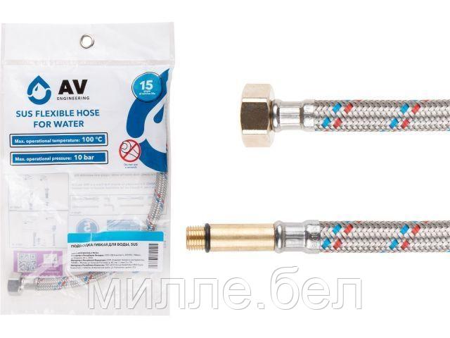 Подводка гибкая, SUS, иголка м10 — гайка 1/2″ 50 см (пара) AV Engineering (10 Bar, 75°С, в пакете)