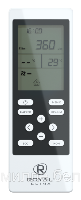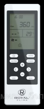 Пульт дистанционного управления позволяет быстро изменять рабочие параметры приточно-очистительного комплекса. С его помощью вы можете регулировать температуру воздуха, скорость вентилятора, выбирать режим работы и устанавливать таймер. Пульт имеет оптимальные размеры и удобно лежит в руке, а на широком дисплее отображаются все рабочие параметры.