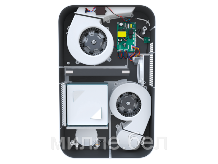 Гигроскопичный пластинчатый рекуператор осуществляет нагрев приточного воздуха энергией вытяжного в зимний период и охлаждение приточного воздуха. Благодаря увеличенному количеству пластин и повышению площади теплообмена эффективность рекуператора составляет до 85%. Гигроскопическая структура рекуператора позволяет влаге, сконденсировавшейся в вытяжных каналах, переходить в приточные каналы, увлажняя воздух в зимний период.