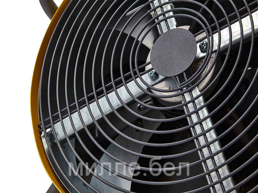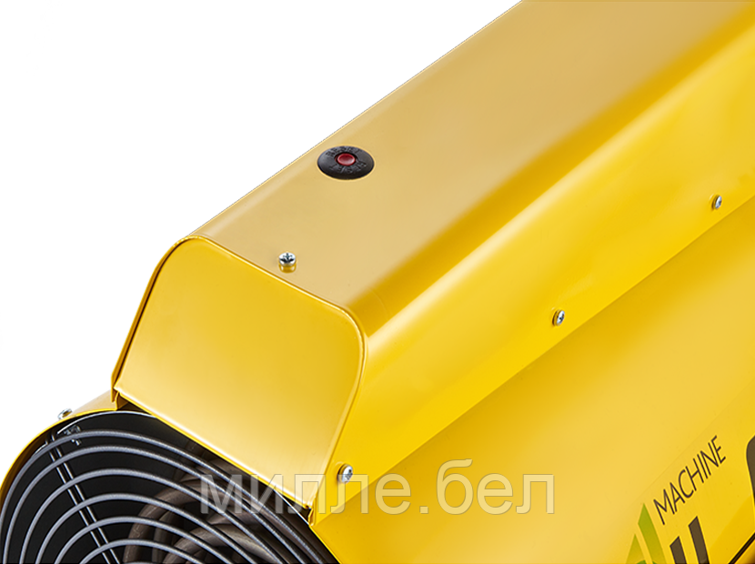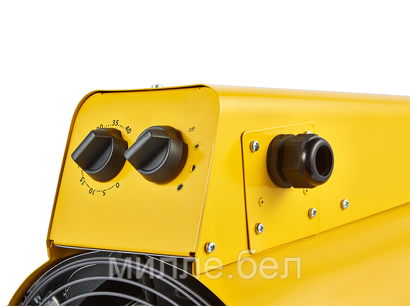 В цилиндрическом корпусе пушки нагревательные элементы особой формы способствуют созданию более эффективного направленного воздушного потока. В пушке предусмотрено два режима мощности и режим вентиляции. Обогреватель питается от сети 400В и имеет кабельный ввод на корпусе, что обеспечивает простоту и надежность подключения.