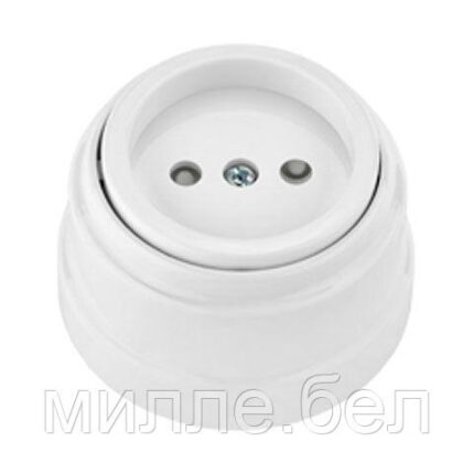 Розетка 1-ая (открытая, б/з, з/ш) белая, Ретро, BYLECTRICA (без монтажной панели)