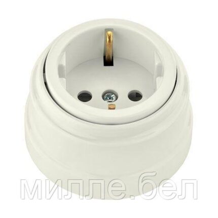 Розетка 1-ая (открытая, с/з) белая, Ретро, BYLECTRICA (без монтажной панели)
