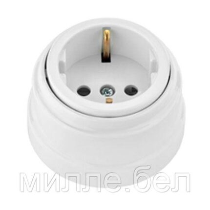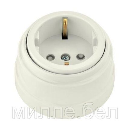 Розетка 1-ая (открытая, с/з) белая, Ретро, BYLECTRICA (без монтажной панели)