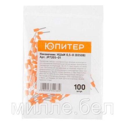 Наконечник-гильза НШвИ 0,5-8 (E0508) (100 шт) Юпитер (с изолированным фланцем) (ЮПИТЕР)