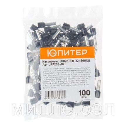 Наконечник-гильза НШвИ 6,0-12 (E6012) (100 шт) Юпитер (с изолированным фланцем) (ЮПИТЕР)