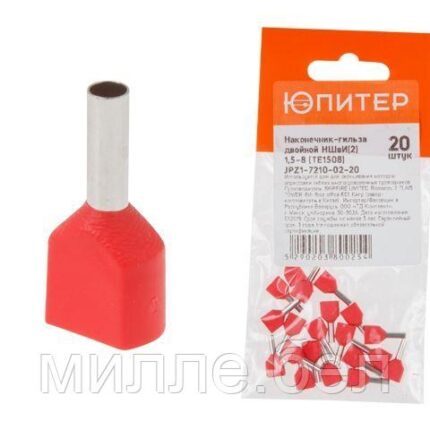 Наконечник-гильза двойной НШвИ(2) 1,5-8 (TE1508) (20 шт) Юпитер (с изолированным фланцем) (ЮПИТЕР)
