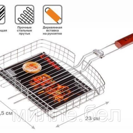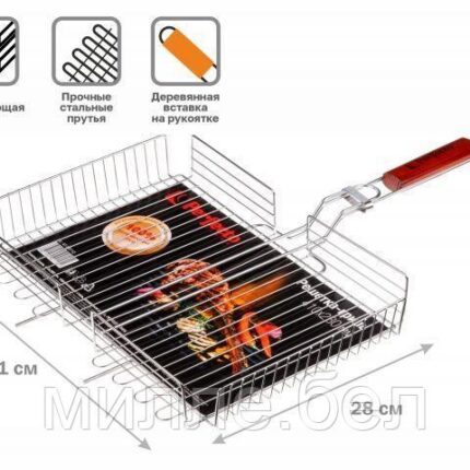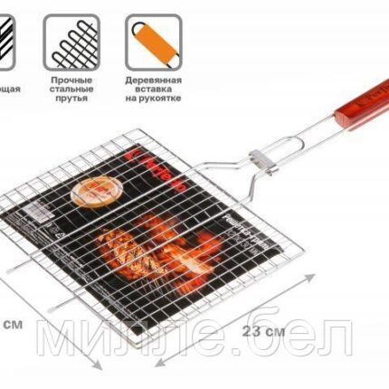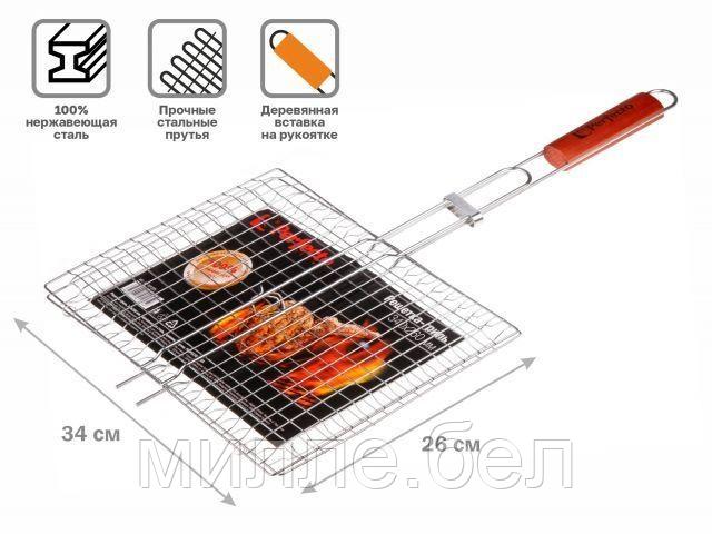 Решетка-гриль, 305×230 мм, нержавеющая сталь, деревянная ручка, PERFECTO LINEA (Суперпрочная. Изготовлена из