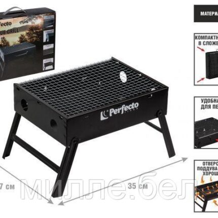 Мангал-барбекю складной с решеткой, 35х27х23 см, сталь, PERFECTO LINEA