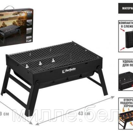 Мангал-барбекю складной с решеткой, 43х29х23 см, сталь, PERFECTO LINEA