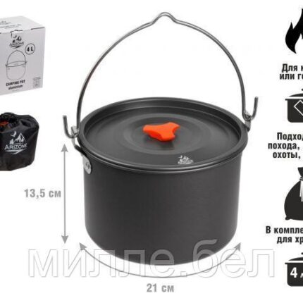 Котелок туристический, 4 л., алюминий, ARIZONE (Изготовлен из пищевого алюминия)