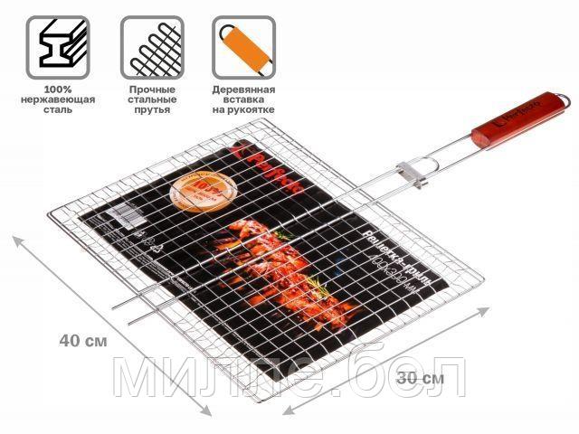 Решетка-гриль, 400×300 мм, нержавеющая сталь, деревянная ручка, PERFECTO LINEA (Изготовлена из 100%