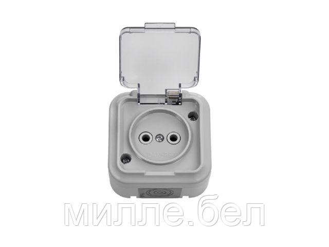 Розетка 1-ая (открытая, б/з, брызг. защ.) серая, Пралеска Аква, Bylectrica (IP54 пылебрызгозащищенные,