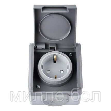 Розетка 1-ая (открытая, с/з, струезащ.) серая, Пралеска Аква, Bylectrica (IP55 пылеструезащищенная)
