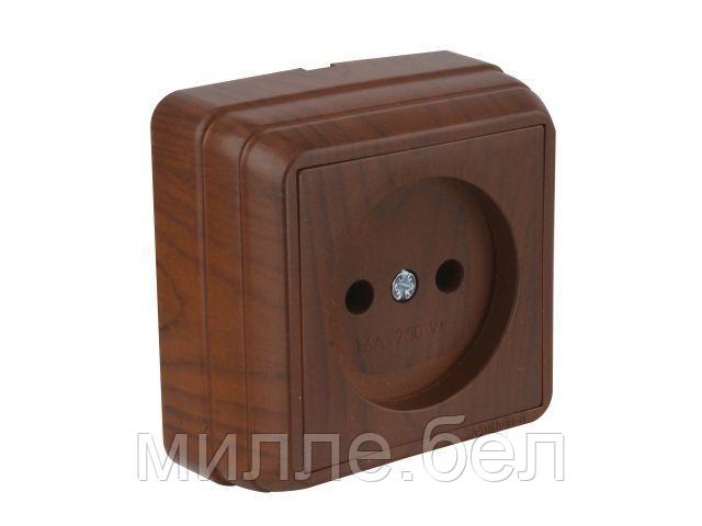 Розетка 1-ая (открытая, б/з) орех, BRON, MUTLUSAN (10 A, 250 V, IP 20)