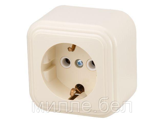 Розетка 1-ая (открытая, с/з, брызг. защ.) бежевая, Стандарт, Юпитер (RA 16-211 БЖ) (ЮПИТЕР)