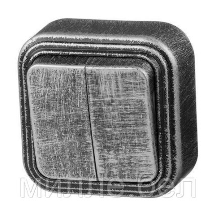 Выключатель 2 клав. (открытый, до 6А) серебро, Стандарт, Юпитер (VA 56-232 ЧС) (ЮПИТЕР)