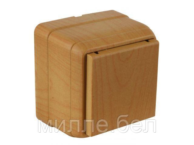 Розетка 1-ая (открытая, с/з, с крышкой) дуб, BRON, MUTLUSAN (16 A, 250 V, IP 20)