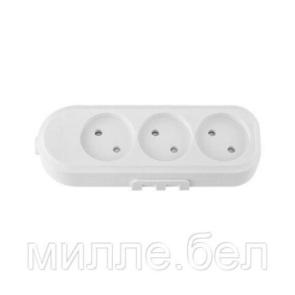Розетка 3-ая переносная (б/з, 16А, 250В, з/ш, струезащ.) белая, BYLECTRICA (с креплением к стене)