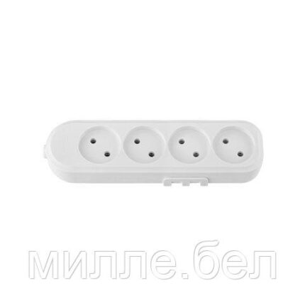 Розетка 4-ая переносная (с/з, 16А, 250В) белая, BYLECTRICA (с креплениемк стене)