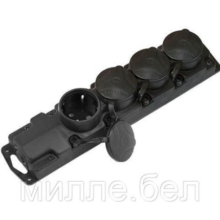Розетка 4-ая переносная (с/з, 16А, 250В, брызг. защ.) черная, Bylectrica