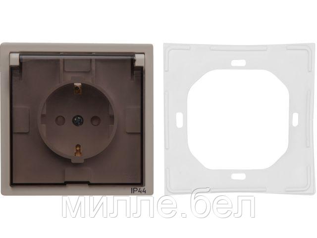 Розетка 1-ая с з/к крышкой прозрачн (скрытая, с/з, з/ш, брызг. защ.) песочная, Carre, BYLECTRICA