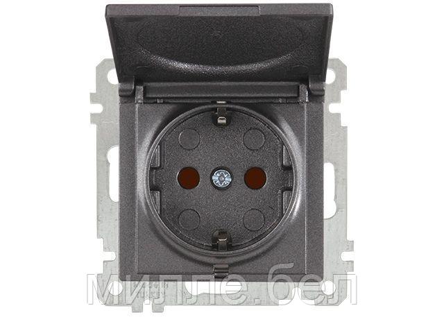 Розетка 1-ая (скр, б/рамки, с/з, шторки, с/крыш) дымч. CANDELA (DARIA), MUTLUSAN (16 A, 250 V, IP 20)