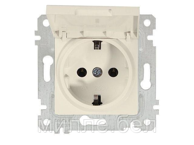 Розетка 1-ая (скрытая, без рамки, с/з, с крышкой) кремовая, RITA, MUTLUSAN (16 A, 250 V, IP 20)