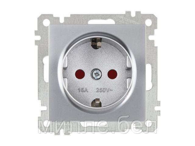 Розетка 1-ая (скрытая, с/з, шторки) серебро, ELITRA, MUTLUSAN (16 A, 250 V, IP 20)