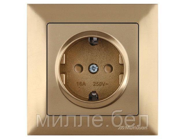 Розетка 1-ая (скрытая, с/з, шторки) золото, DARIA, MUTLUSAN (16 A, 250 V, IP 20)