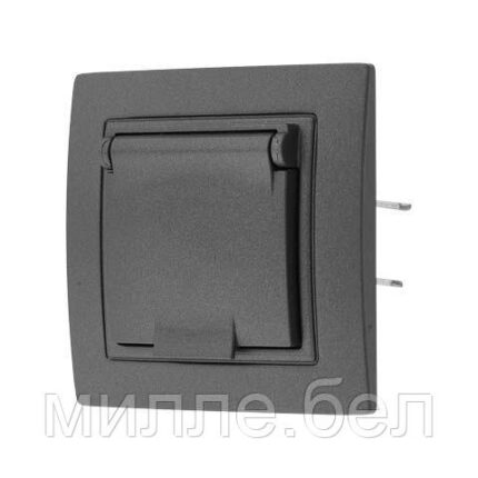 Розетка 1-ая с з/к крышкой (скрытая, с/з, з/ш,брызг. защ.) графит, Уют, BYLECTRICA