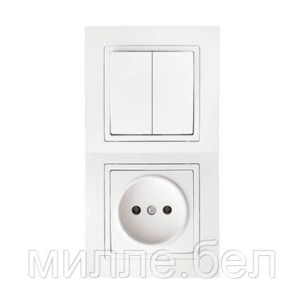 Блок выкл. 2 клав. + розетка (скрытая, б/з) белая, Уют, Bylectrica