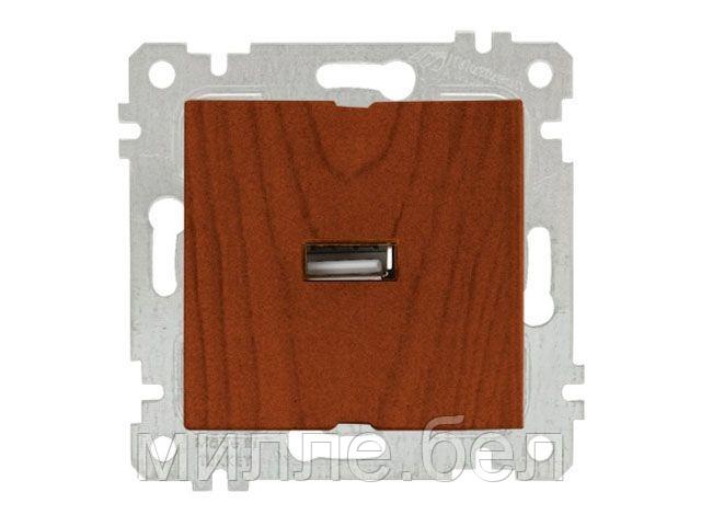 Розетка 1-ая USB (скрытая, без рамки) вишня, RITA, MUTLUSAN (USB-зарядка, 5V-2.1A)