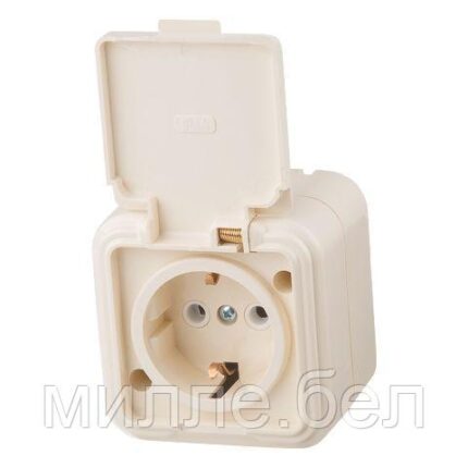 Розетка 1-ая (открытая, с/з, брызг. защ.) бежевая, Стандарт, Юпитер (RA 16-211 БЖ) (ЮПИТЕР)