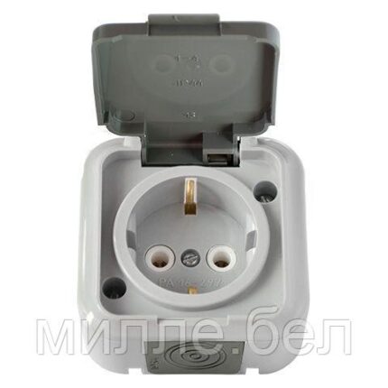 Розетка 1-ая (открытая, с/з, брызг. защ.) серая, Пралеска Аква, Bylectrica (IP54 пылебрызгозащищенные)
