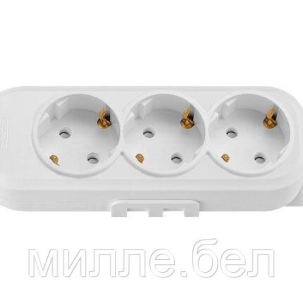 Розетка 3-ая переносная (с/з, 16А, 250В, з/ш) белая, BYLECTRICA (с креплением к стене)