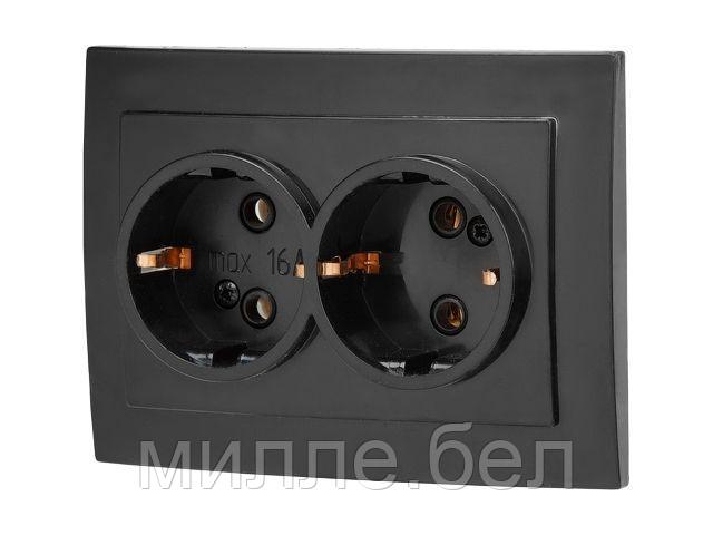 Розетка 2-ая (скрытая, с/з) черная, Стандарт, Юпитер (RS 16-238 Ч) (ЮПИТЕР)