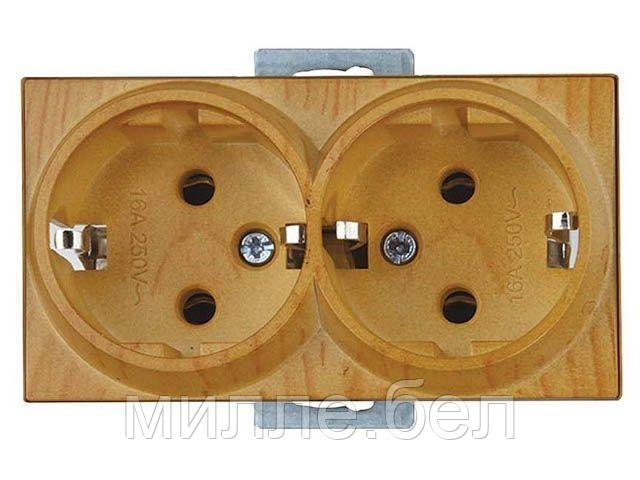 Розетка 2-ая (скрытая, с/з) дуб, RITA, MUTLUSAN (16 A, 250 V, IP 20, без рамки)