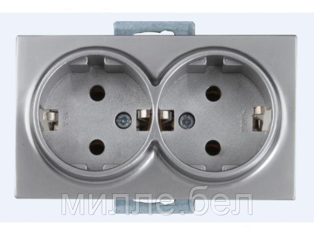 Розетка 2-ая (скрытая, с/з, керамика) серебро, DARIA, MUTLUSAN (16 A, 250 V, IP 20)