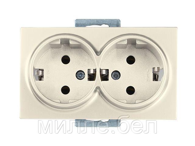 Розетка 2-ая (скрытая,с/з, керамика) кремовая, DARIA, MUTLUSAN (16 A, 250 V, IP 20)