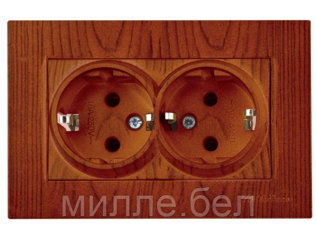 Розетка 2-ая (скрытая,с/з) орех, RITA, MUTLUSAN (16 A, 250 V, IP 20)