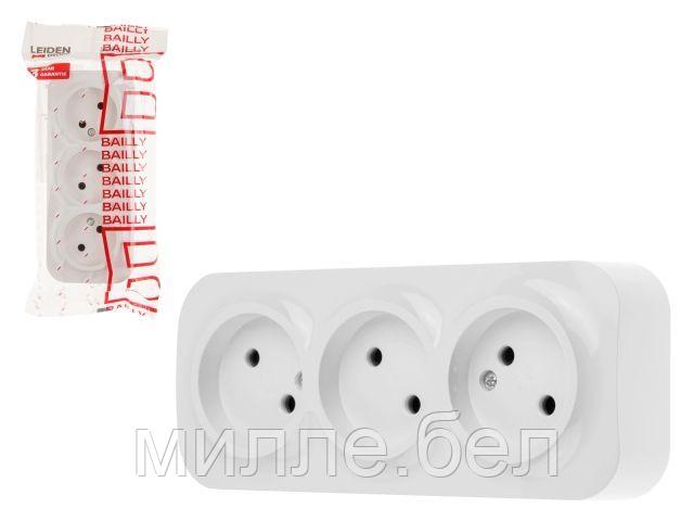 Розетка 3-ая (открытая, б/з) белая, Bailly, LEIDEN ELECTRIC