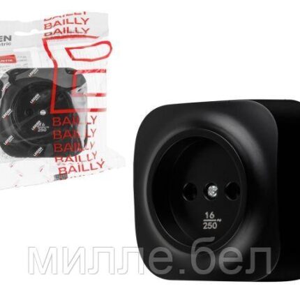 Розетка 1-ая (открытая, б/з) черная, Bailly, LEIDEN ELECTRIC