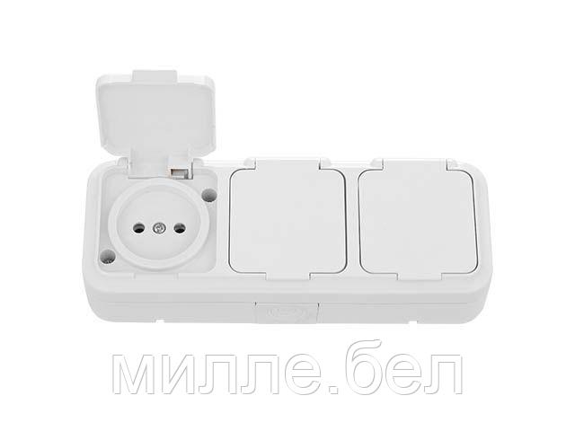 Розетка 3-ая (открытая, б/з, брызг. защ.) белая, Пралеска Аква, Bylectrica (IP54 пылебрызгозащищенные)